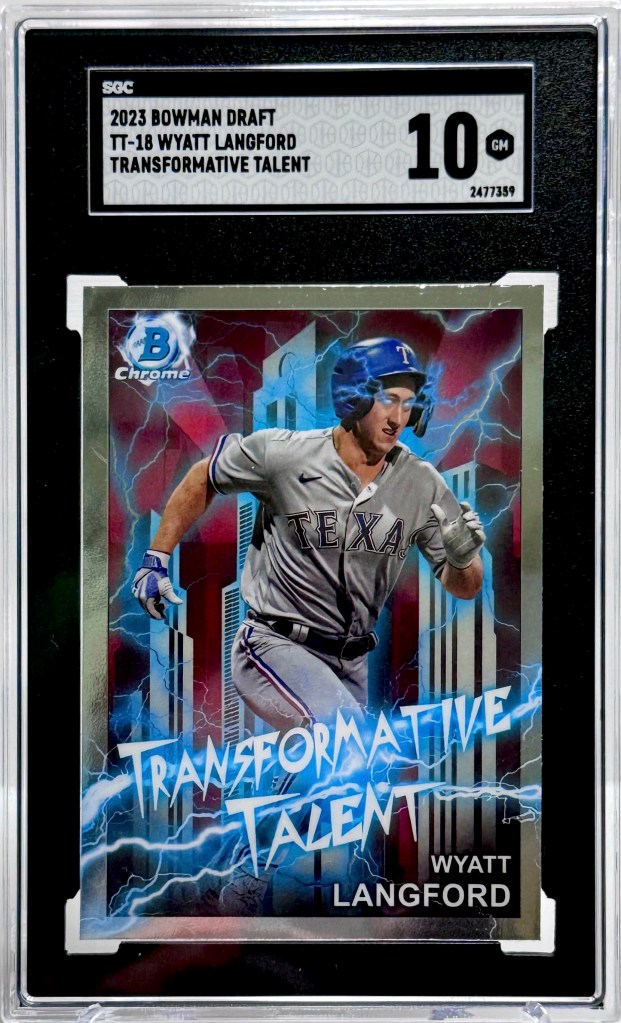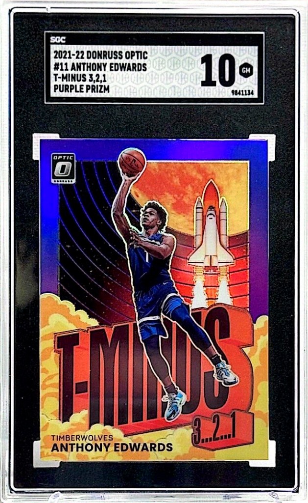 A few of our favorite slab purchases we made this week include the 2021-22 Donruss Optic Anthony Edwards T-Minus Purple Prizm SGC 10, the 2019 Panini Chronicles Luka Doncic PSA 10, and the 2023 Bowman Draft Wyatt Langford Transformative Talent SGC 10. We acquired the Wyatt Langford and Luka Doncic slabs through auctions on eBay, while the Anthony Edwards slab was won via an auction at PWCC.